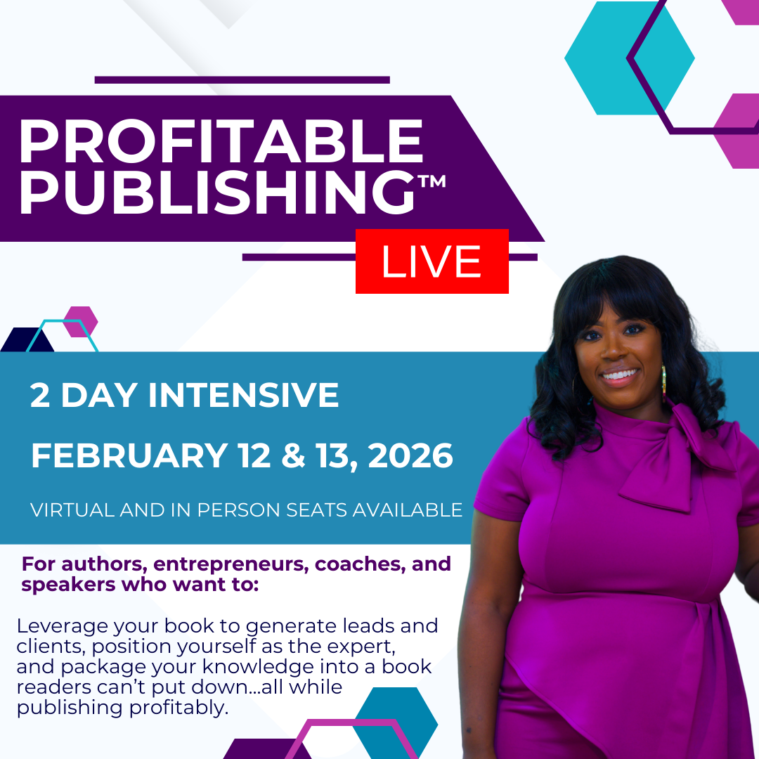 During this 2-day live intensive, you’ll be guided through the Profitable Publishing™ Framework — the same one used by authors who I’ve helped earn thousands in preorders, secure speaking engagements, build coaching programs tied to their books, and expand their authority at the same time.